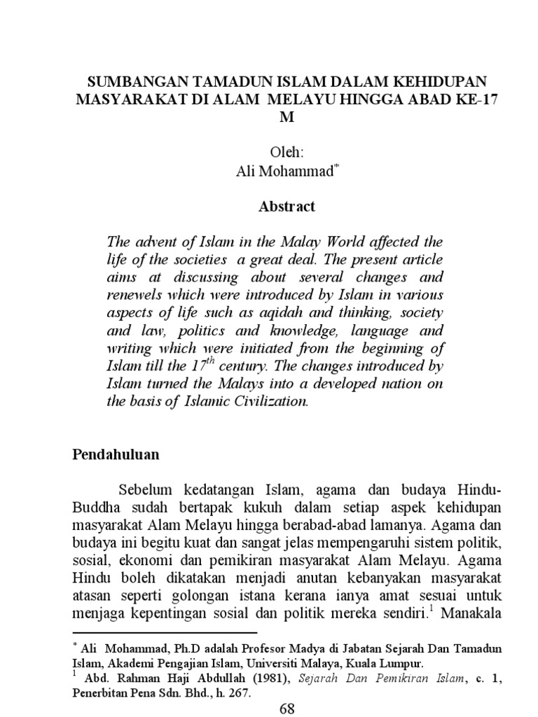 Interaksi antara tamadun islam dengan tamadun melayu serta kesannya.